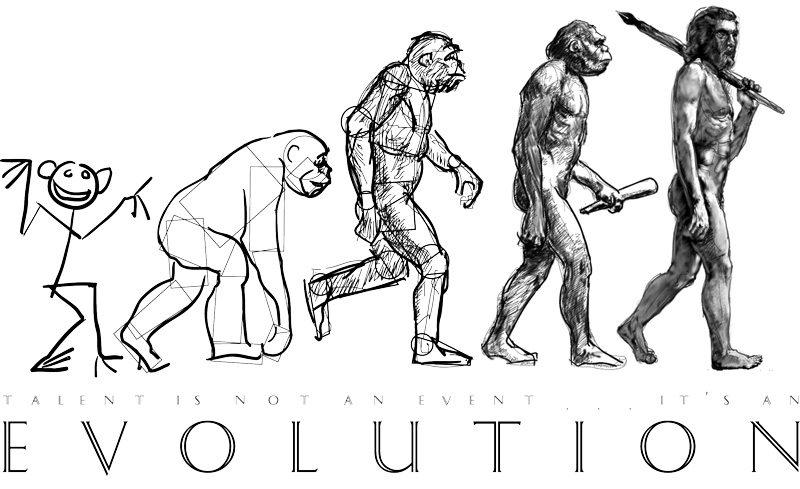 client : Spartanburg Art Museum Art School project : "Talent is not an event... it is an EVOLUTION" credits : inspired by the 1965 illustration by Rudolph Zallinger for Time-Life Books medium : digital with stylus all rights reserved