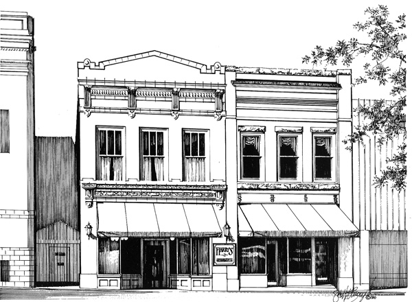 client : Harry's on Morgan Square image size : approx. 9"x12" pen & ink: Scott Cunningham all rights reserved